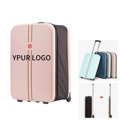 This foldable carry on luggage is designed for frequent travelers seeking a space saving solution. Measuring 20.5 by 14.2 by 9.1 inches, it has a rigid polycarbonate shell and four rotating spinner wheels. The suitcase folds flat when empty, making it easy to store under beds or in closets. Each piece is shipped in protective packaging to maintain quality. Contact us for more details.