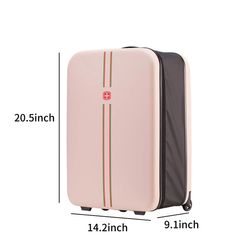 Additional InformationThis suitcase measures 20.5 by 14.2 by 9.1 inches and has spinner wheels for smooth transport. Contact us for more details.