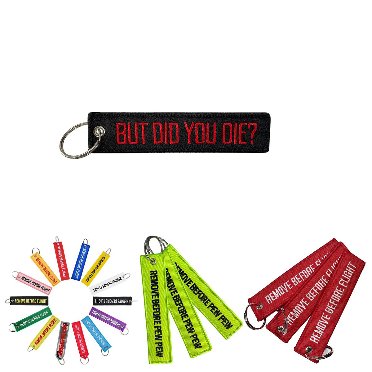 Additional InformationThis 3.94 inch flight keychain includes a metal loop and embroidered tag Contact us for more details.